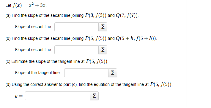 Solved Let F X X2 3x A Find The Slope Of The Secant Line Chegg Com